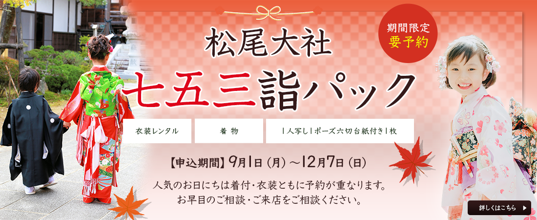 松尾大社での七五三詣パック(衣装レンタル・着付あり)受付開始